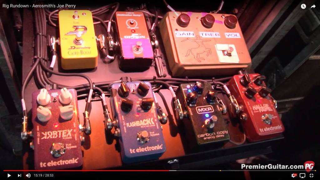Brad Whitford – Aerosmith : อีกหนึ่งมือกีตาร์ของ Aerosmith ที่ขาด Klon Centaur ไม่ได้เช่นกัน โดยก้อนที่ Brad ใช้นั้นเป็นก้อนแรกๆเลยที่ถูกผลิตออกมา Brad เล่าให้ฟังว่าเขาอยู่ที่ Boston และได้โทรไปหา Bill โดยตรง หลังจากนั้นเขาก็เป็นแฟนตัวยงของ Klon Centaur .. Brad ใช้ Klon นั้นขยายสัญญาณให้แอมป์ที่เปิดเบอร์ 4-5 ได้เสียงแบบที่เปิดเบอร์ 9-10 และมันแทบจะไม่เปลี่ยนเสียงกีตาร์เลย มันเอาเสียงกีตาร์ของคุณไปขยายให้อิ่มและใหญ่ขึ้น ( http://bit.ly/2I2mQ7P )